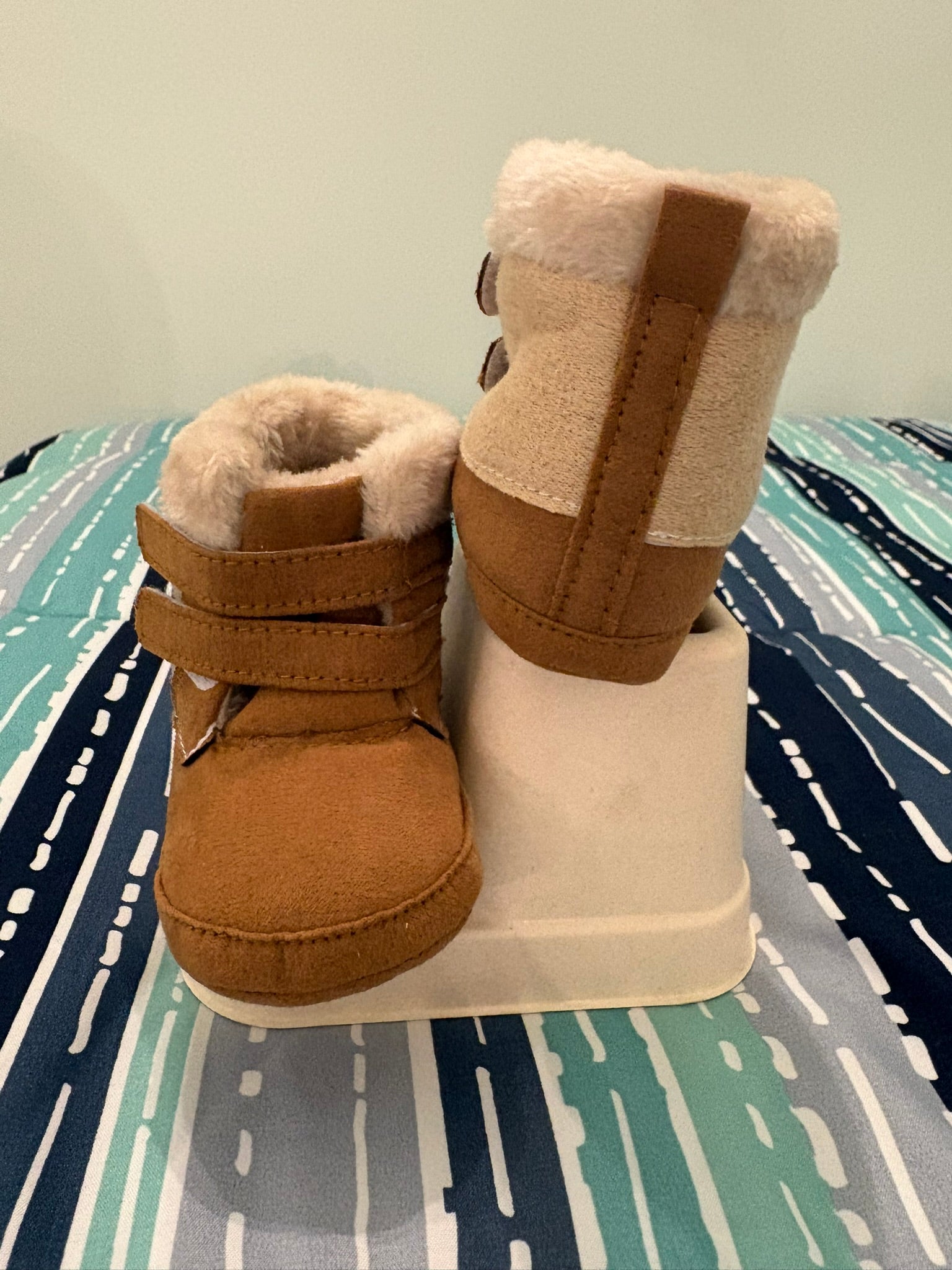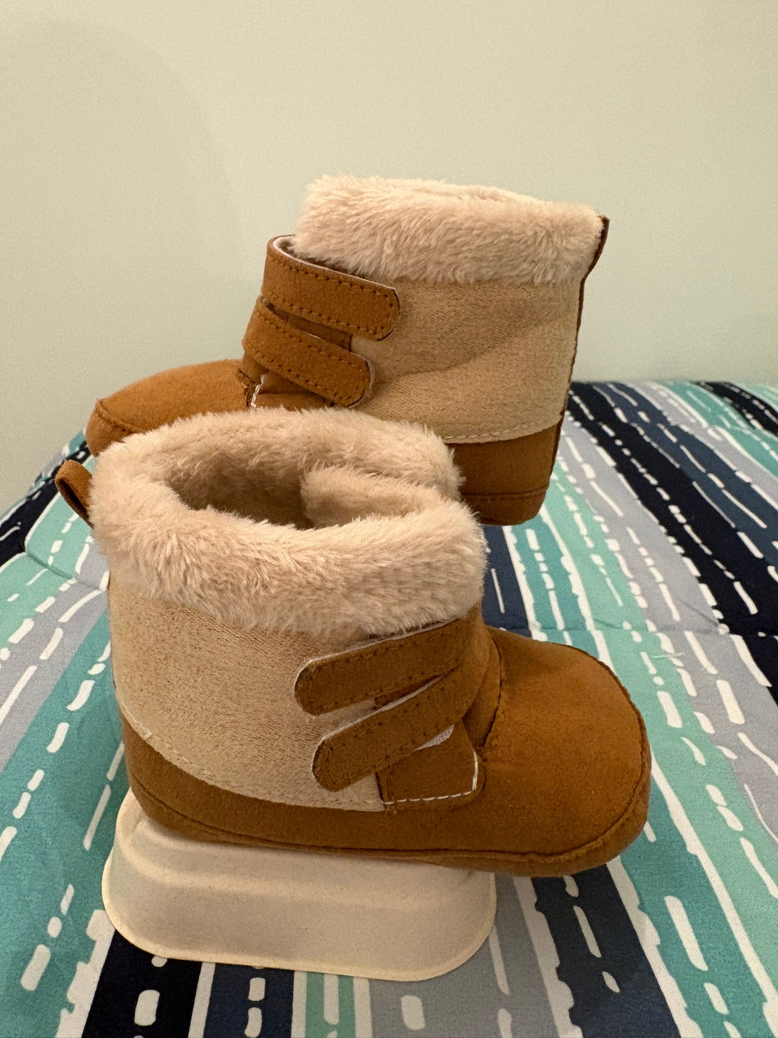 Pantoufle enfant, garçon ou fille, brun et beige. Doux comme du minou à velcro.